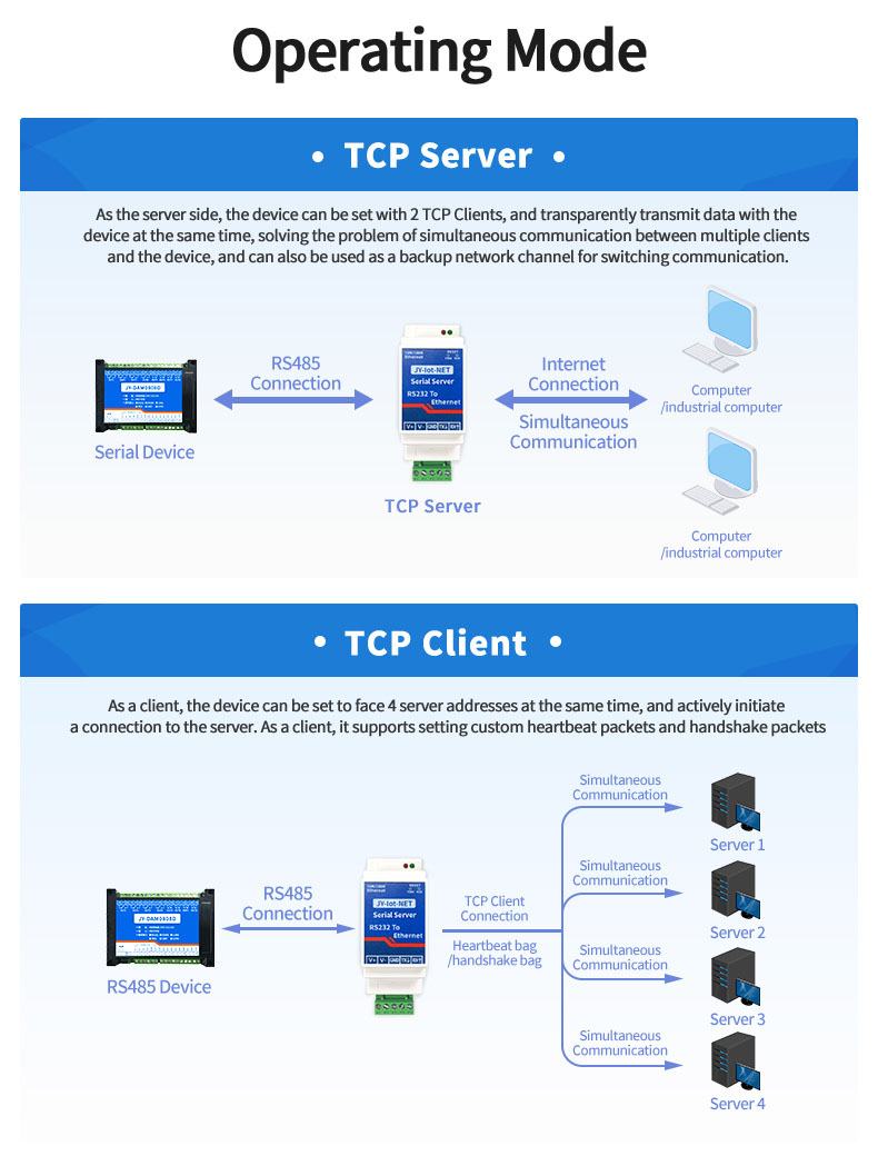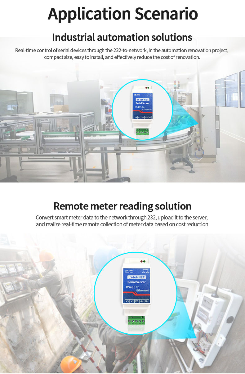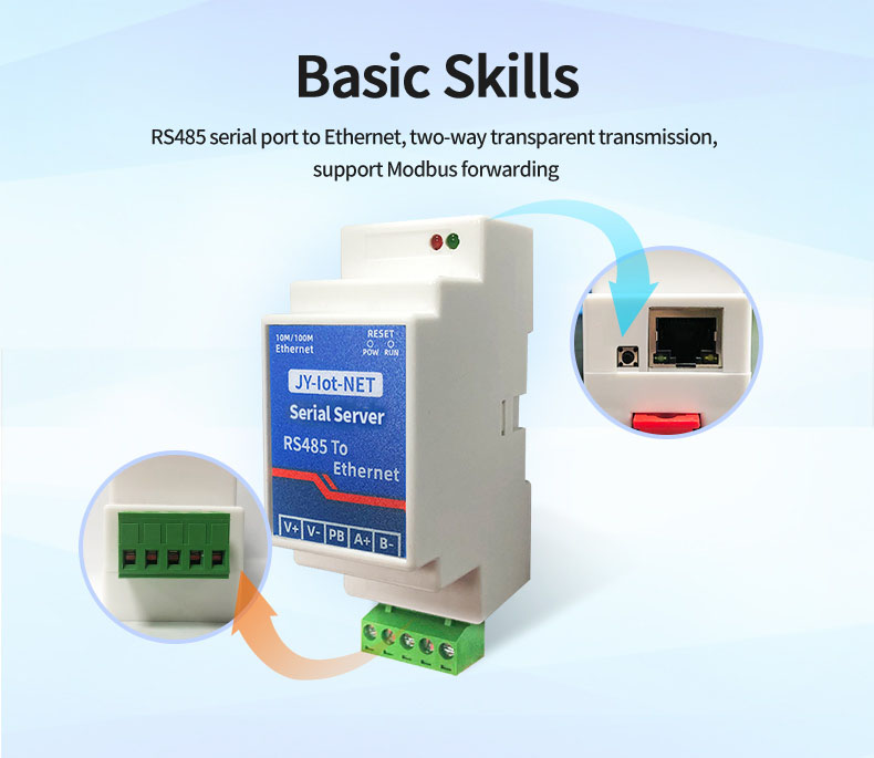 lndustrial Grade JY-lot-NETRS485 Serial Server,RS485 toEthernet/Transparent Transmission/Modbus Forwarding/35mm Rail installation