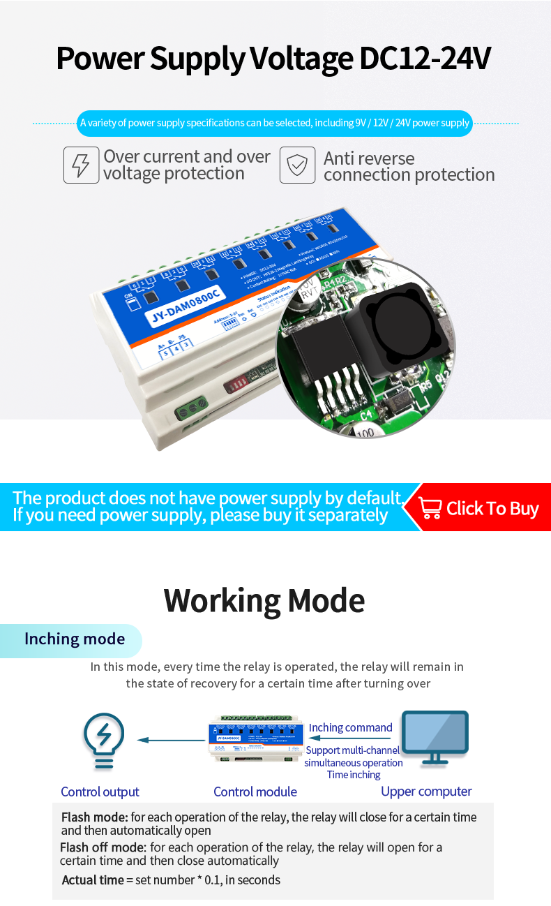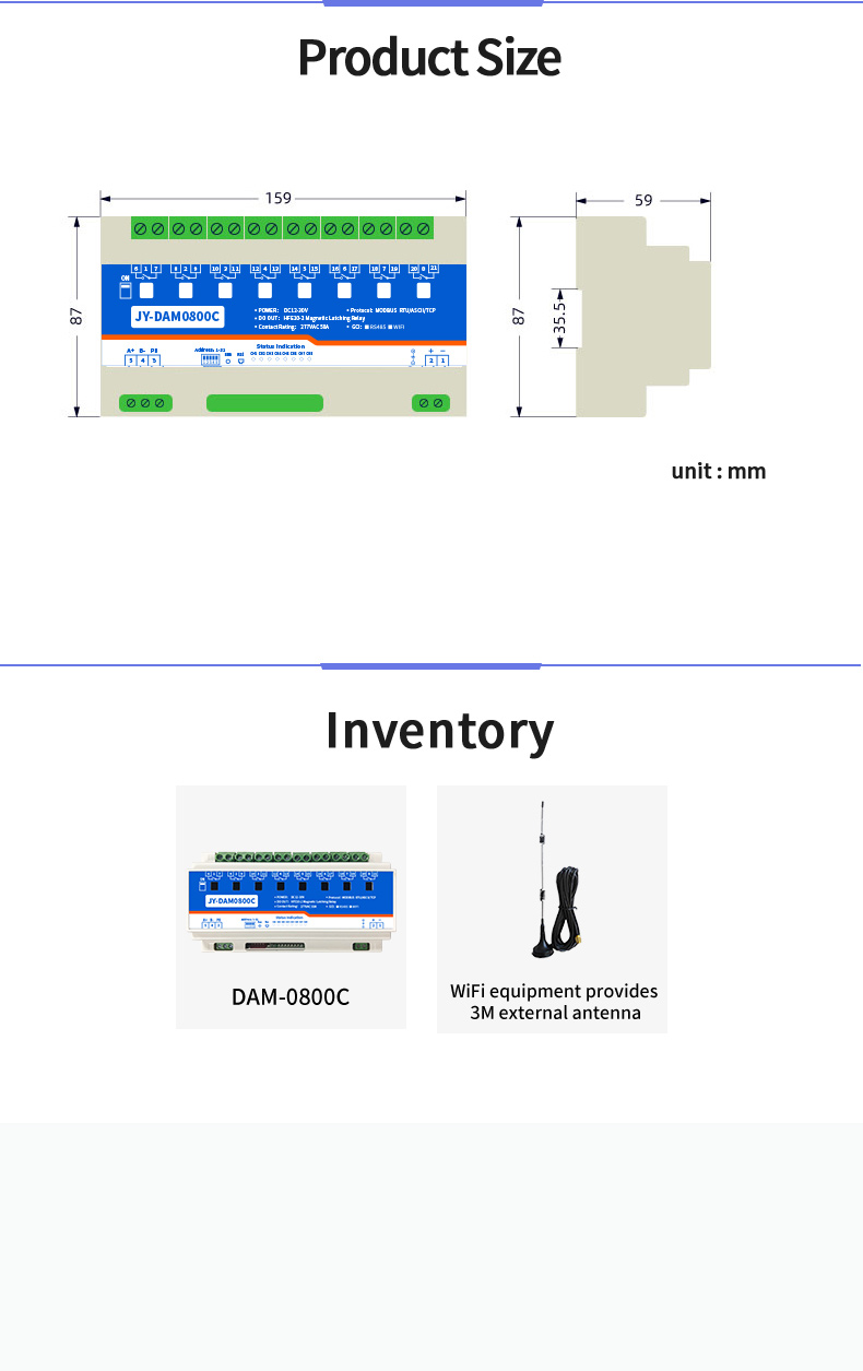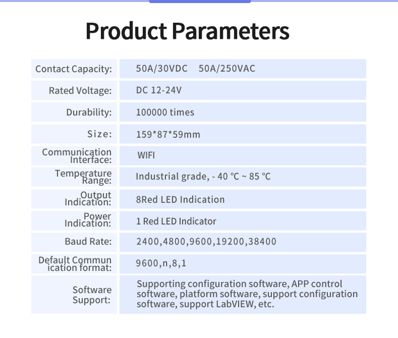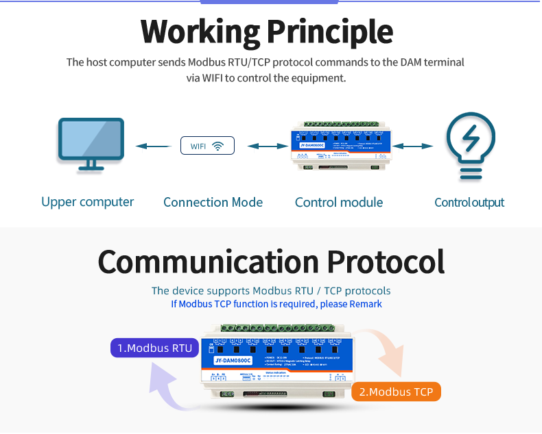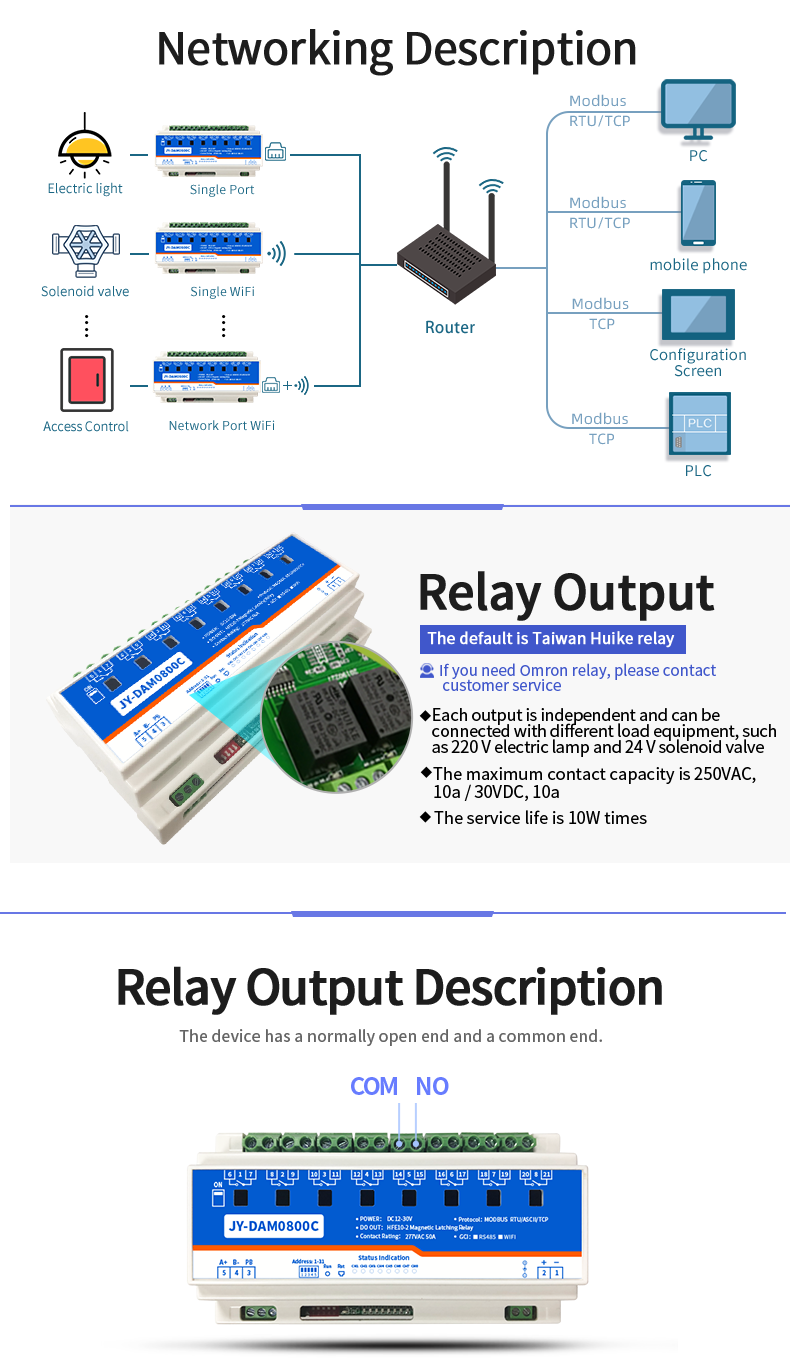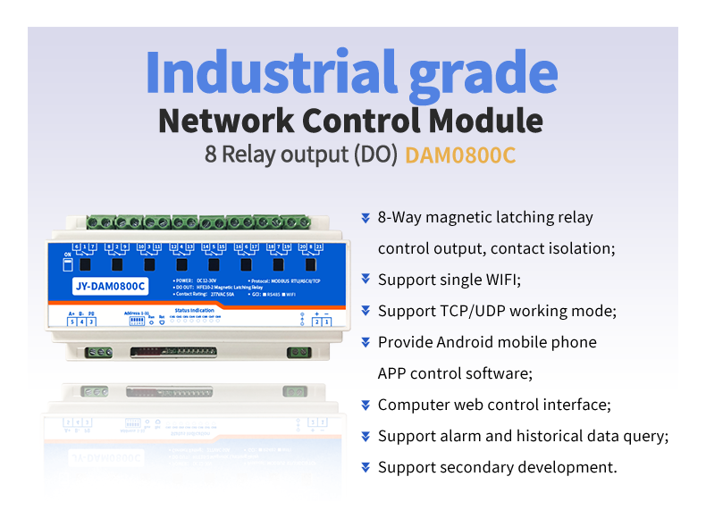Dam0800c industrial network control module, 8-way relay output (do), 8-way magnetic holding relay control output, contact isolation; Support single WiFi; Support TCP / UDP working mode; For Android mobile app control software; Computer web page control interfa...