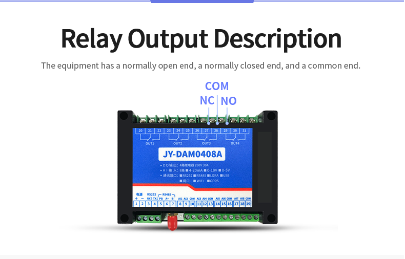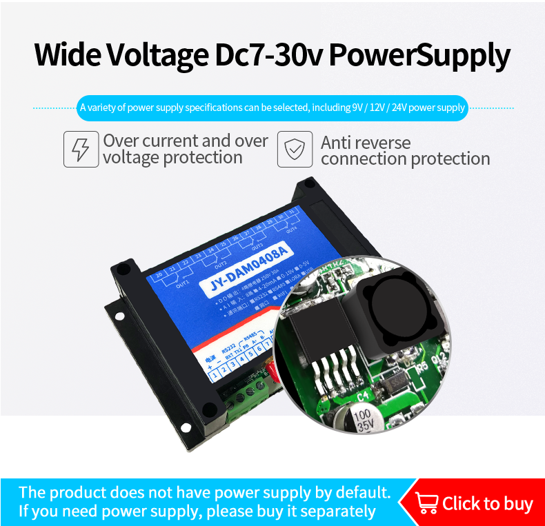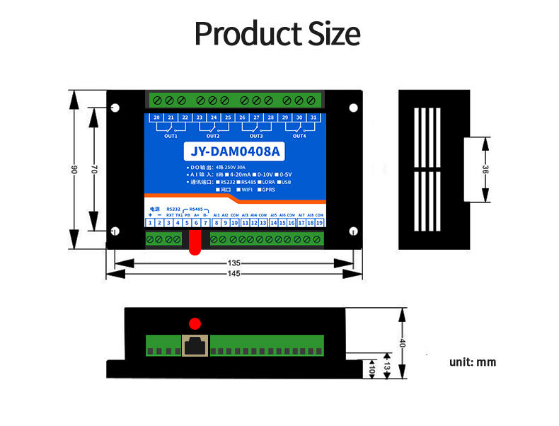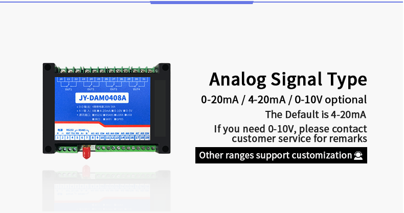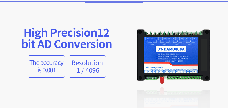 Dam0408a industrial network control module, 4-way relay output (do), 8-way analog acquisition (AI), 4-way relay control output, contact isolation; 8 analog inputs; Support single network port, single WiFi and network port + WiFi; Support TCP / UDP working mode...