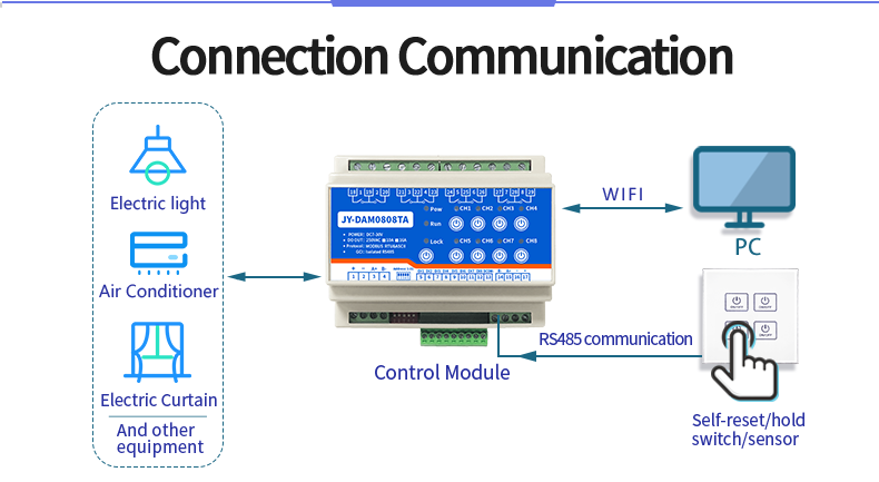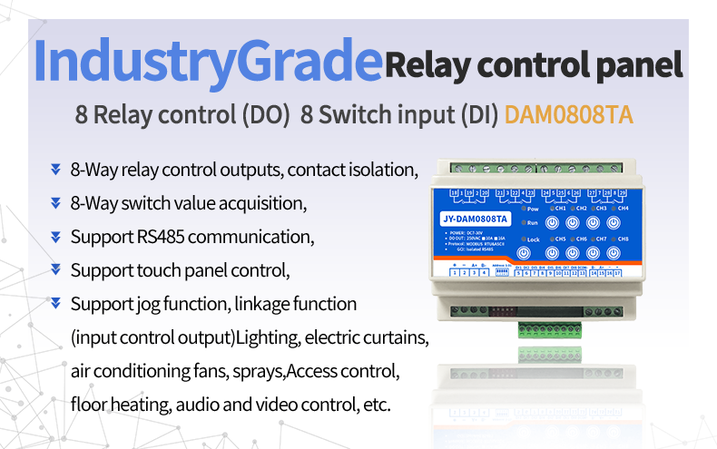 Damo808ta smart home controller, 8-way relay output (do), 8-way switching value input (DI), 8-way relay control output, contact isolation, 8-way switching value acquisition, supporting WiFi communication, touch panel control, inching function and linkage funct...