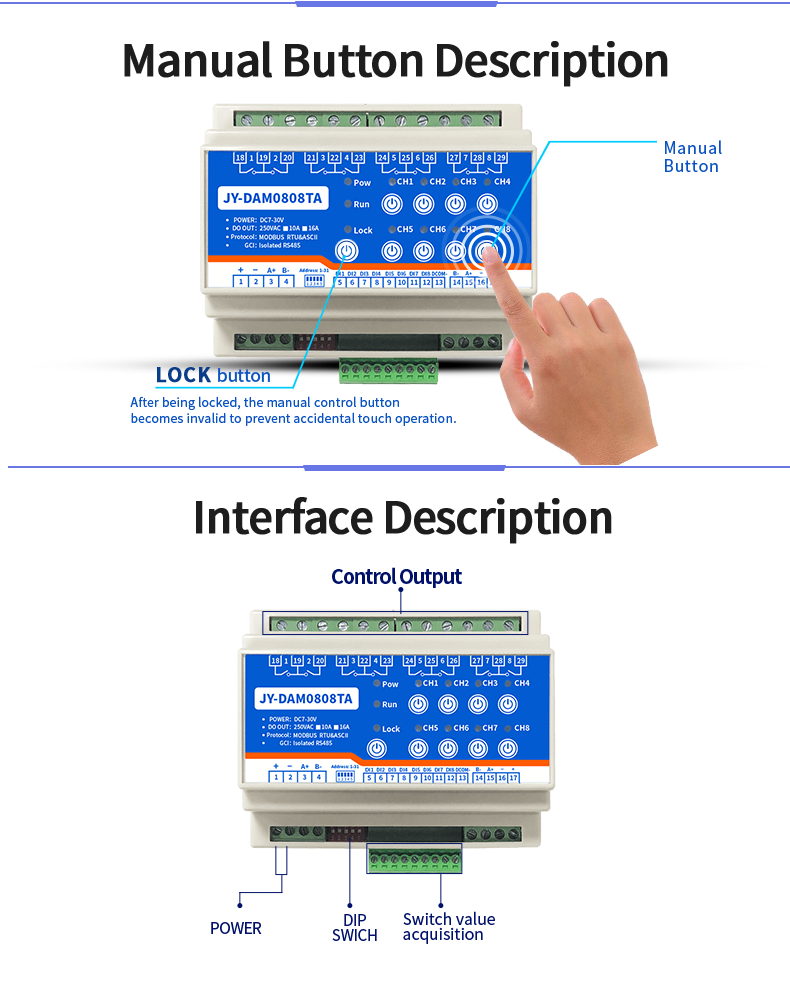 | DAM0808TA Industrial network data acquisition controller Instruction Manual | DAM0808TA Industrial network data acquisition controller Instruction Manual |