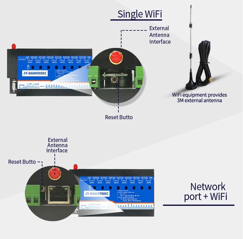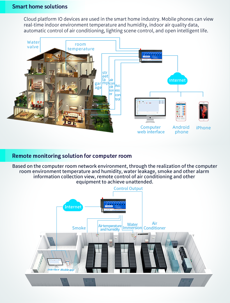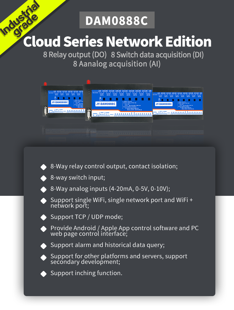 Industrial cloud platform series network version, 8-way relay output (do), 8-way switching value acquisition (DI), 8-way analog value acquisition (AI), 8-way magnetic holding relay control output, contact isolation; 8-way switching value input; 8 analog inputs...