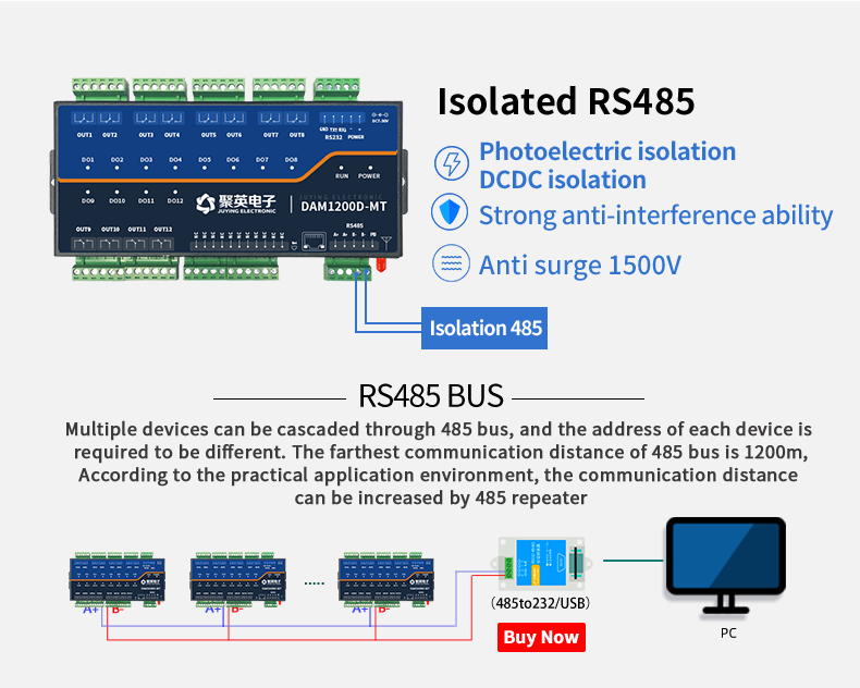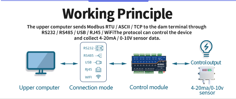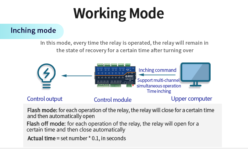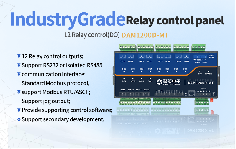 Industrial relay control board, 12 relay control (do), 12 relay control output; Support RS232 or isolated RS485 communication interface; Standard Modbus protocol, supporting Modbus RTU / ascll; Support inching output; Provide supporting control software;
