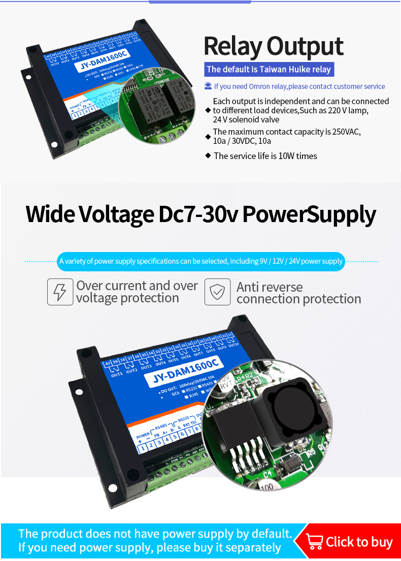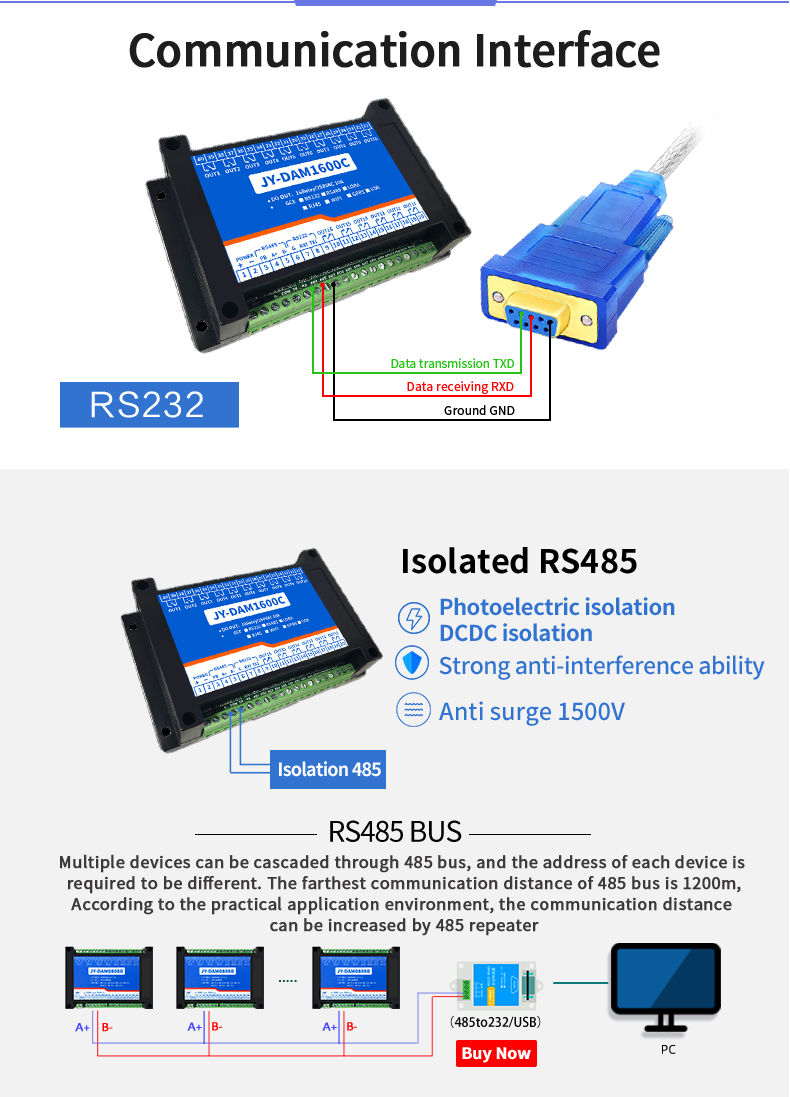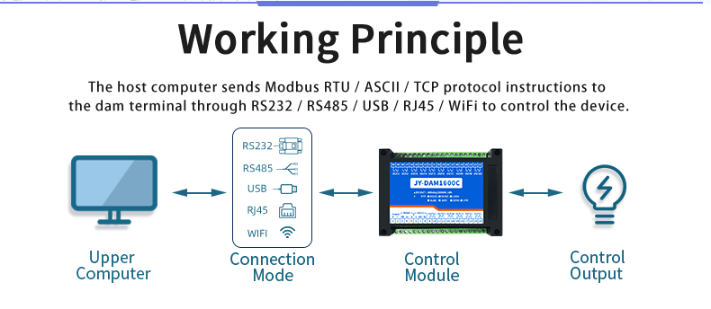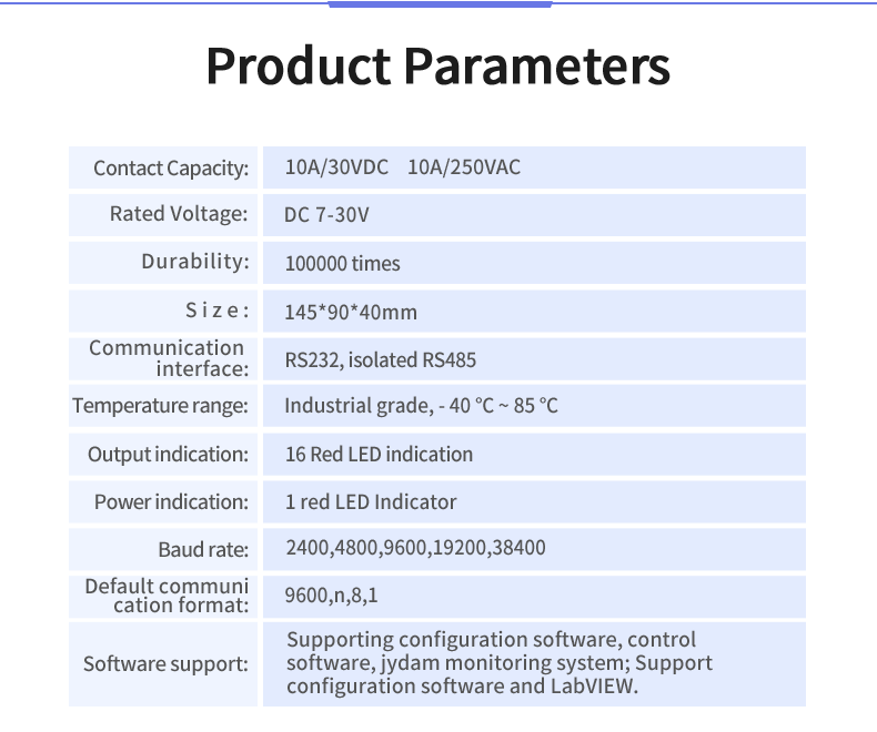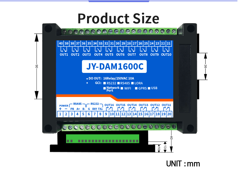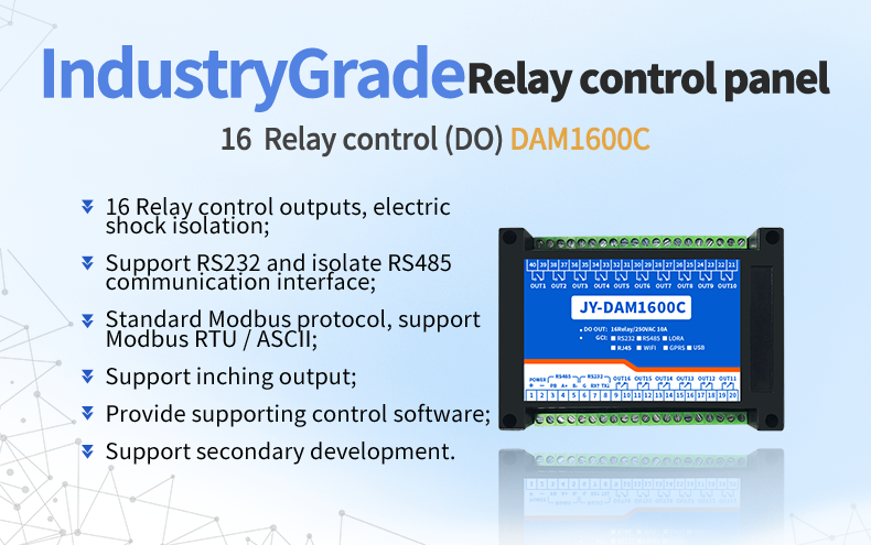Industrial grade relay control board, 16 channel relay control (do) dam1600c, 16 channel relay control output, contact isolation; Support RS232 or isolated RS485 communication interface; Standard Modbus protocol, supporting Modbus RTU / ASCII;