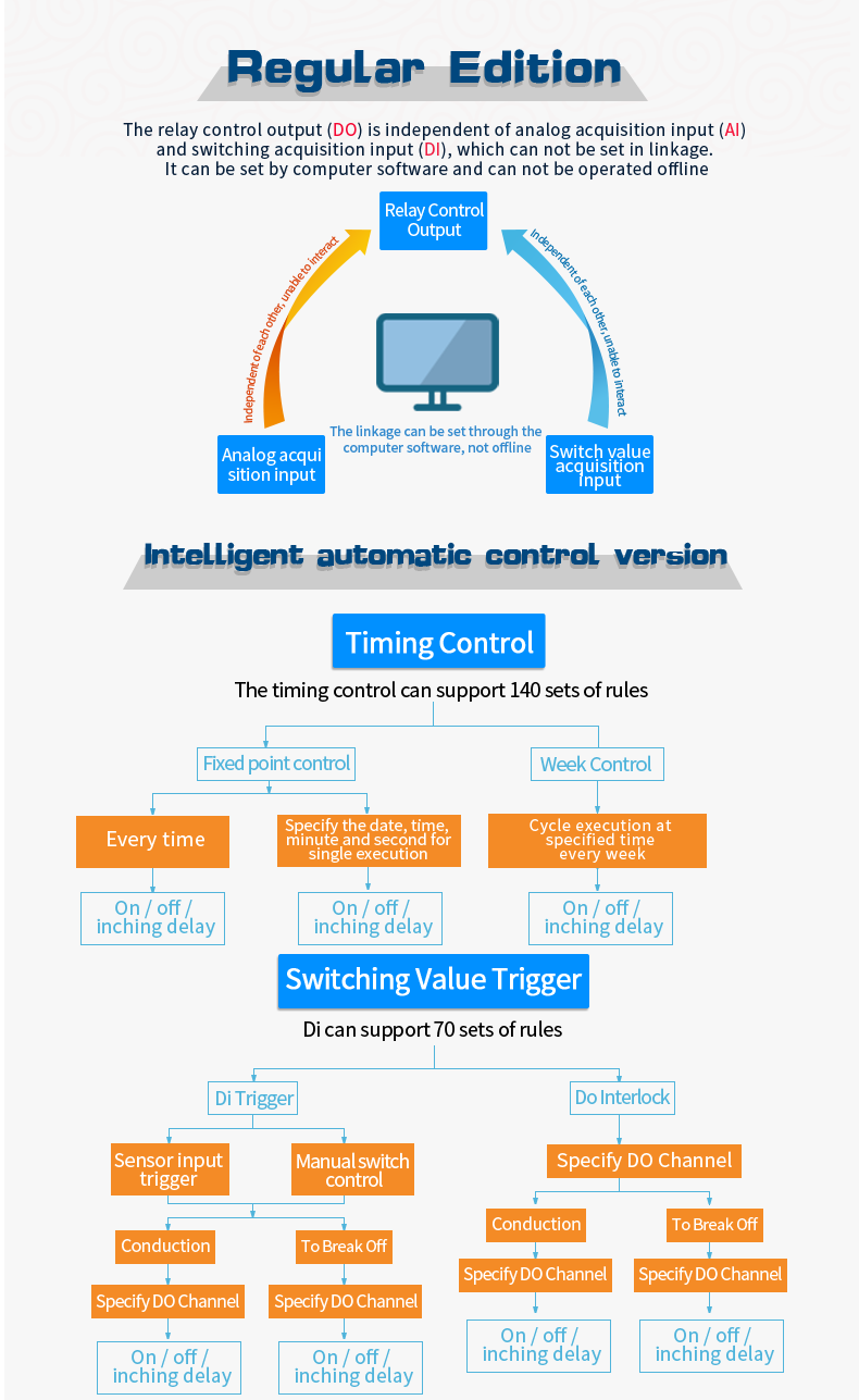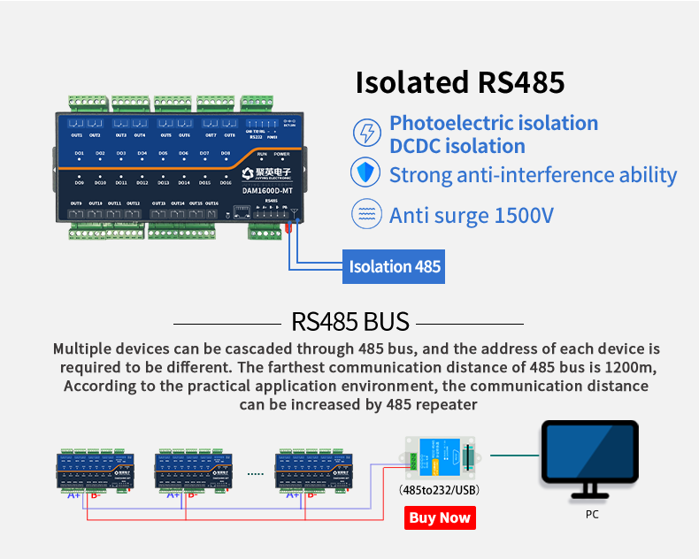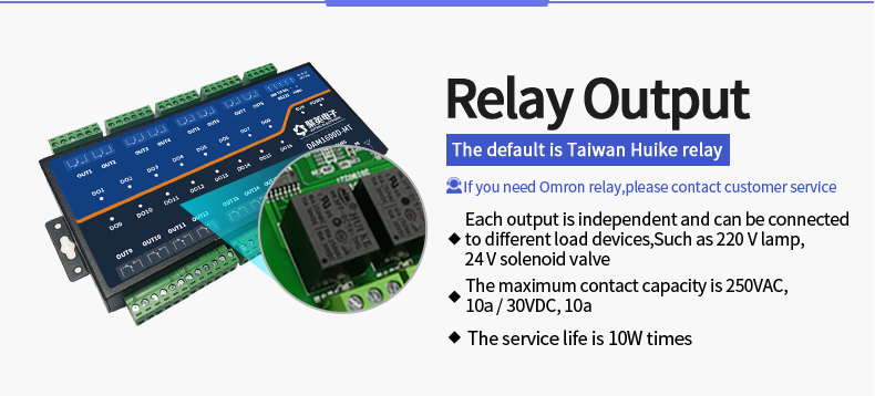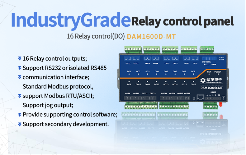Industrial relay control board, 16 channel relay control (do), 16 channel relay output, contact isolation; Standard Modbus protocol, supporting Modbus RTU / ascll; Support RS232 and isolated RS485 communication interfaces; Support inching output; Provide suppo...