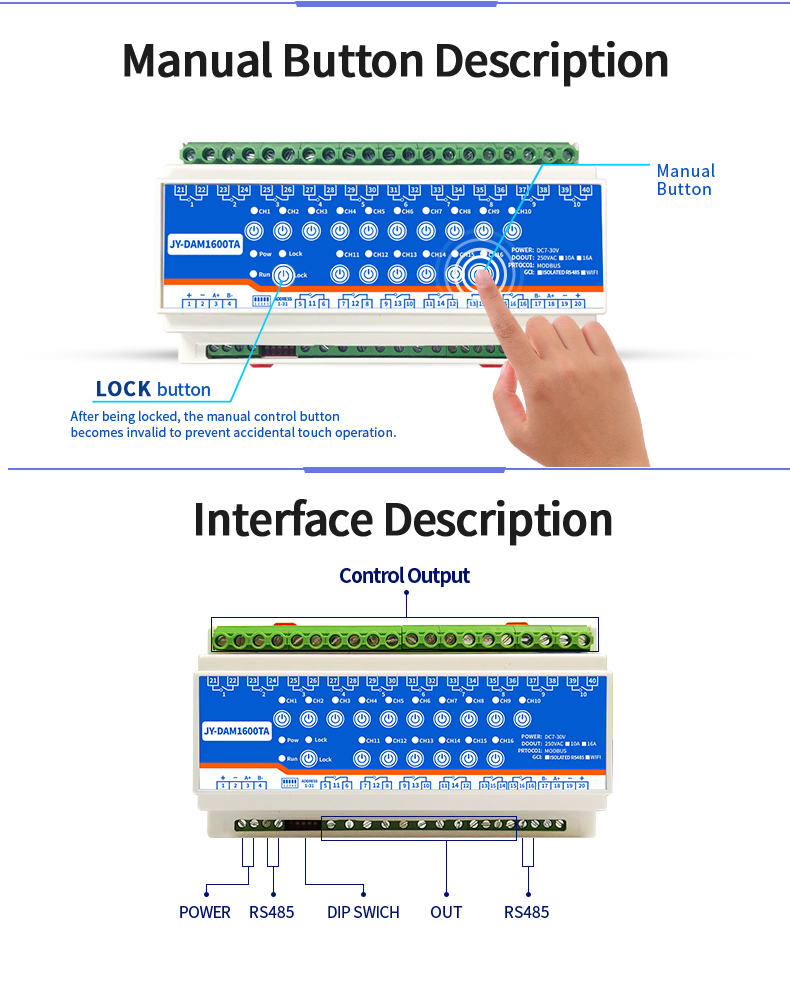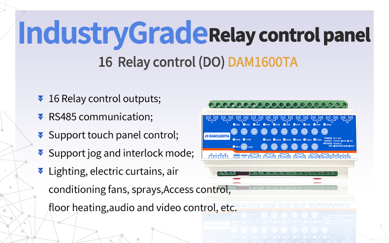 Smart home controller 16 way relay output (do) dam1600ta, 16 way relay control output, WiFi communication, support touch panel control, inching and interlocking mode, lighting, electric curtain, air conditioning fan, spraying, access control, floor heating, vi...